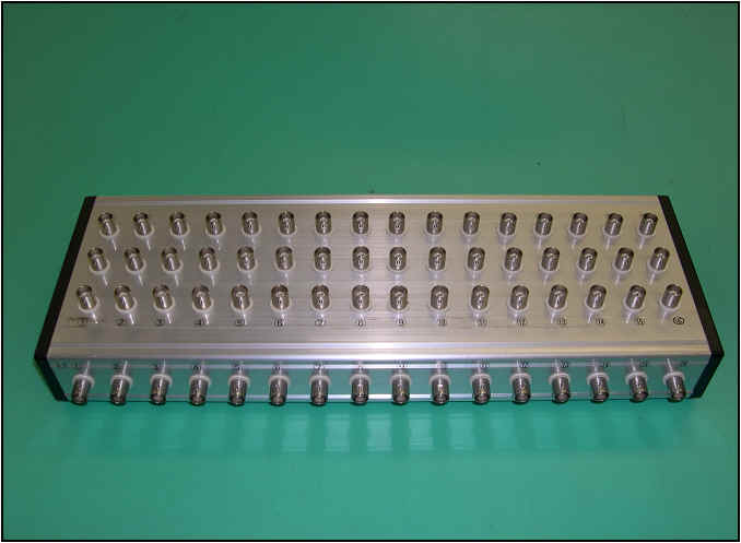 - 標準的に使用される『BNC端子』を多数並べたもの(例_BNC中継ボックス)